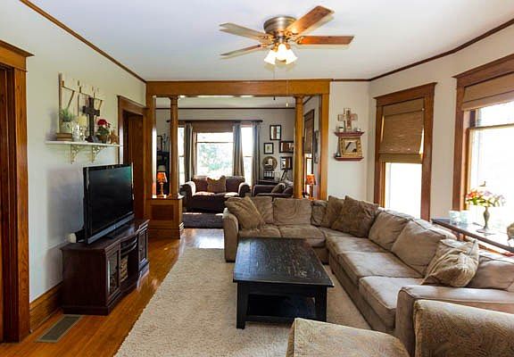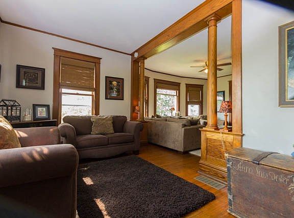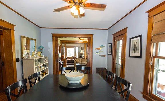 Wonderful Country Home on 3+ Acres. Home offers gorgeous woodwork, 4 spacious bdrms, 2 full baths, formal dining & living rms, Built in cabinets & 2 sets of working pocket doors. Great kitchen that has been updated yet fits with the feel of the home. Newer oversized garage 28'x40' w\rough in for a bath. Several usable out bldgs. Wrap around porch & more. This home & property shows well both inside and out!