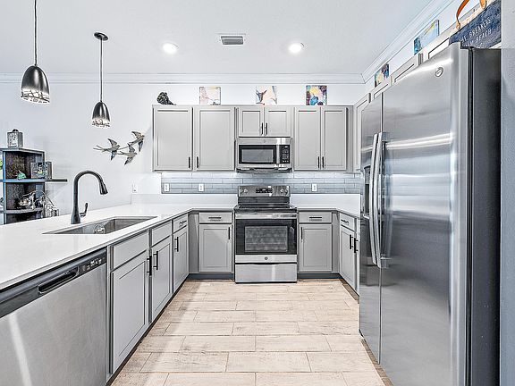 This stunning townhome in the vibrant community of Arbor Parc, offers every resort-like amenity for the perfect Florida lifestyle. This immaculate townhome, just 3 years old, features gorgeous upgrades throughout including strikingcustom lighting, elegant crown molding, and new porcelain tile flooring. The beautiful open kitchen flows seamlessly into a naturally lit living room, opening onto a fenced in back deck paradise, all perfect for entertaining. Upstairs youwill find 4 spacious bedrooms, including a luxurious master suite with a walk-in closet and double sinks in the ensuite bathroom. A convenient laundry room is also upstairs. This home even has impact windows throughout! The community itself boats a clubhouse, pool, state-of-the-art fitness center, picturesque lakes and trails and is located near top-rated schools, restaurants, shopping and beautiful beaches.