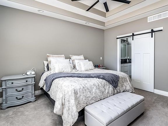 WOW! Get the modern/updated look of new construction with all the finishing touches and UPGRADES galore! Set in the desirable Edgewater Area with no backyard neighbors, sprinkler system plus well, HOT TUB, and less special taxes than most in the area. Inside is accented from top to bottom with custom stone fireplace, granite, quartz, and marble counters throughout, crown molding, engineered hardwood floors, built-in shelving, vaulted ceilings and wood beams for extra character. The entire house and garage are wired for surround sound and almost everything can be controlled from your phone...including the thermostat, garage door, and some basement lighting. You'll also love the remote blinds in the Living Room for the perfect picture window view! Top it off with upgraded appliances, light & plumbing fixtures, 2 HW heaters & top-of-the-line HVAC system. The split bedroom floor plan offers a large Master Suite with gorgeous Master Bath plus connected Laundry Room. The View-out Basement completes the home nicely with HUGE Family Room set with quartz stone and built ins, awesome wet bar with fridge & microwave plus the shuffle board stays! 2 additional bedrooms, extra nice Bath with walk-in shower, and good storage space fulfill all your needs in this AMAZING HOME! A few extra touches...garage is an extra 4' wide, class 4 impact resistant roof & invisible dog fence surrounds the backyard. CALL FOR A SHOWING TODAY!