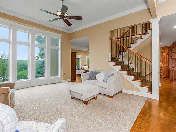 Terrific Carson Custom 1 1/2 story Home on a wonderful cul-de-sac lot in Montebella! Large open hearth room, kitchen w/ huge center island workstation, granite countertops, hardwood floors and a beautiful fireplace! First floor master suite w/ luxurious bath! Covered deck! Walk-out lot! AAA Park Hill Schools! Just minutes from downtown! Home is situated on a Beautiful lot with Private wooded backyard that overlooks the Waterfall and lovely Views. The downstairs basement has a full Wet Bar for plenty of space for Entertaining, or private living space for a family member. Come and see what all this home has to offer.