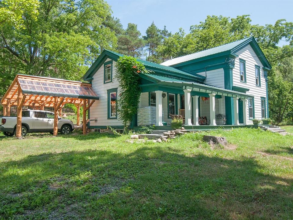 One of a kind! Two houses on 37 acres surrounded on 3 sides by the Finger Lake National Forest. Since 2014, the 2 bedroom* Greek Revival (1920SF) has been completely gutted and renovated with added insulation, new mechanicals, plumbing, electric, a new roof and a brand new furnace. The smaller one bedroom cottage (1080SF) was built new in 2014. The adjacent 37 acres is just stunning with 2 miles of mowed trails, a year round stream, a pond, springs, forest and fenced horse pasture. Centrally located in the Finger Lakes - just minutes to Seneca Lake, Watkins Glen (with it's gorges and international racetrack), Elmira and Ithaca (With Cornell University and 3 lush State parks with hiking trails and waterfalls.*The large primary bedroom was originally two rooms-could easily be again.