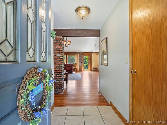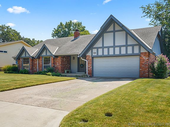 Spacious and meticulously maintained home in the coveted Brookwood neighborhood. A true gem with true red oak hardwood floors and tile throughout, easy maintenance without any carpet. All solid-core doors and thermal windows create extraordinary energy efficiency. The vaulted living room is a highlight, with a beautiful corner brick fireplace for cozy gatherings. Incredible storage abounds throughout. Each bedroom features a walk-in closet. Stainless appliances and solid surface counters with abundant cabinets. Enjoy a prime South Tulsa location, with proximity to Holland Hall schools, Hunter Park, and much more. New roof in October 2023!
