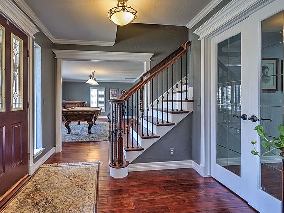 Beautiful updated home. Master down with beautifully redone bathroom high end fixtures. 4 bedrooms up with access to storage. Game room down with pool table and bar. Well appointed office off entry. Large family room open to kitchen with granite and high end appliances. Well established neighborhood. Jenks East elementary