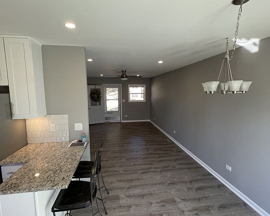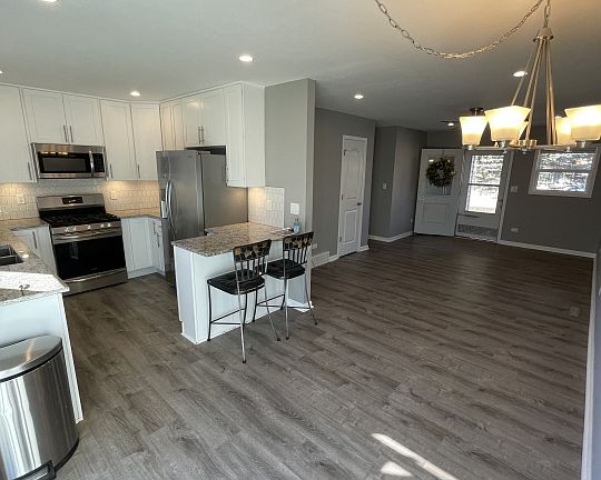 Johnsburg home for sale. Do not be deceived by the outside! 1100Sq ft up & 1100sq ft down. 4 bed, 2 bath. New windows, doors, electric, plumbing, siding, etc... new oversized 2 car garage. Full fenced yard with 6 foot privacy fence. Kitchen has high-end Frigidaire appliances with shaker style cabinets. Uppers are 42 inch, drawers are dovetail, all are soft close. Massive deck in back for ultimate entertaining! Full finished basement with custom bar. Steps away from waterfront parks and boat launch to the Fox River. Golf cart/ side by side community.