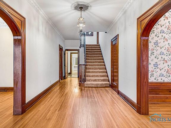 Classic Ottawa Hills Estate built for Tietdke’s daughter. Exceptional attn.to detail &finest materials. Art-deco tiled vestibule w/French door opens to grand foyer. Interior w/rich walnut trim, arched doorways, ornate plaster, built-ins. 3 fireplaces incl. 1 w/stone mantle. Expansive rooms w/10ft. ceilings &windows allows for abundant natural light on main lev. Kitchen w/butler’s pantry &separate eat-in area. Master ste w/sitting room, multiple closets, bath w/separate tub &shower. Finished 3rd flr &lower lev rec. 3-car garage w/circular drive. Approx. ¾ acre lot. A/C most of 2nd &3rd stories.
