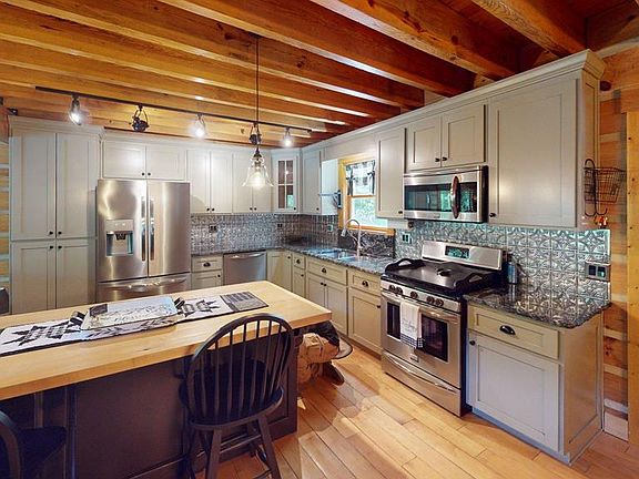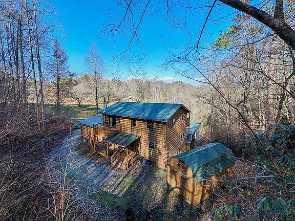 True Mountain Log Cabin Retreat on 5+/- Acres – Furnished! This stunning chinked log cabin checks every box for your dream mountain escape. Nestled on over 5 beautifully groomed acres with easy year-round access, this home offers ultimate peace and privacy—yet it's just minutes from the quiet, charming town of Andrews and close to top destinations like the Nantahala River, Lake Nantahala, and Great Smoky Mountain attractions. Step inside to refined rustic elegance featuring soaring wood-beamed ceilings, granite countertops, custom cabinetry, and stainless steel appliances. The spacious layout includes master bedrooom on main floor complete with cozy fireplace, large master bathroom, huge walk in closet and adjacent sewing room. Total of 2 bedrooms plus 2 versatile bonus rooms—ideal for guests, hobbies, or extra sleeping space. The large master suite also boasts a private deck and an attached room perfect for a home office, nursery, or craft space. The master bedroom has private exterior door and patio door to the deck . A second bedroom also offers a private deck and generous closet space and very cool bathroom. The warm, inviting dining area features a cozy wood-burning stove—perfect for gathering with friends and family on cool mountain evenings. Two separate living areas make entertaining effortless, both opening onto wide porches where you can relax in a rocking chair and soak in the mountain serenity. This cabin comes furnished as shown in the photos—move right in and start enjoying mountain living from day one! Outside, enjoy a bubbling stream, fire pit, walking trails, and scenic pastures all around. There's also a large detached garage/workshop, a two-car metal garage, full RV hookup & generator. Pet lovers will appreciate the fenced areas allowing dogs to roam safely indoors and out. Whether you're looking for a full-time residence, vacation home, or turn-key rental investment, this property offers a rare blend of comfort, quality, and natural beauty.