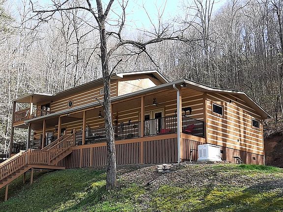 If you are looking for a warm inviting home in the mountains look no further. Gorgeous, well maintained log cabin nestled in mountain cove on 5.85 acres. Private Setting. Re-chinked and painted in 2021. Lower master bedroom, bathroom, walk-in closet, and 10x10 storage room addition was added in 2021 as well. Once inside this cabin you will see high end detailed finishes, wood floors, and beautiful wood beams throughout the living area. Open kitchen with granite counter tops, stainless appliances, custom cabinets and gas stove. 3 bedrooms, 3 full baths, office, loft/bonus room, 2 master bedrooms. Lower master has huge walk-in closet, bed and breakfast fireplace. Custom cabinet, granite counter top with dual sinks, walk-in tile shower and large linen closet in the bathroom. Upper master has walk-in closet and dual sinks in the bathroom. 2 balconies upstairs: 1 off the master and the other off the loft/bonus room. Beautiful wood-burning stove with stone surround. 10x10 storage room on lower level. Covered front porch 8X60 with ceiling fans. Covered back porch 8X28. Spring fed water system with crystal clear water. 2 car garage (20x20) and 1 oversized garage (18x26 with storage area and oversized garage door), 20x26 workshop on concrete with 2 garage doors (10' and 8') and entrance door with 26' lean-to, 12x20 wood shed. There is a driveway that goes behind the cabin for easy access to the home. Home has spray foam insulation in crawl space and attic. Whole house Generac generator with 330 gallon buried propane tank. Certified termite bond through Terminex. Property is partially fenced and off a 2 lane paved road. 15 miles to the NOC (Nantahala Outdoor Center) for rafting, kayaking, zip lining, and restaurants. 15 minutes to the casino. 2 miles to downtown Andrews. This house has everything you are looking for in a true log cabin in the mountains.
