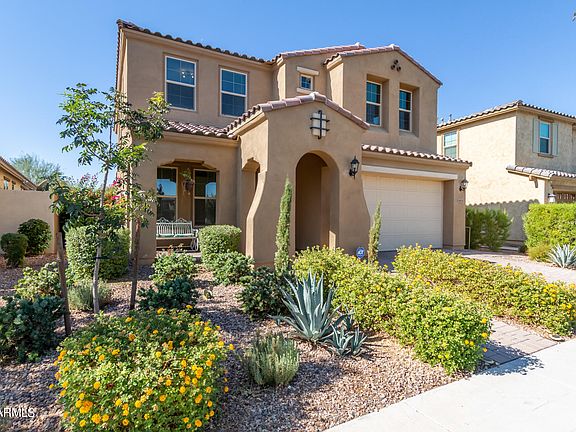 Unveil the charm of this two-story home, seamlessly designed with a blend of elegance and functionality! A cozy front porch & manicured desert landscaping greet you upon arrival. 3 bedrooms & a den w/double doors for an office or another bedroom, a large loft, a formal dining room, & a desirable living room. You'll love the wood-look tile & soft new carpet with neutral palette! The kitchen includes recessed lighting, SS appliances, a plethora of cabinets w/crown moulding, a pantry, granite counters, & a gigantic center island w/breakfast bar. Upstairs, you'll find spacious master bedroom with an ensuite w/dual sinks & a walk-in closet. The spacious backyard offers a covered patio and artificial turf. A rare find like this won't last long!