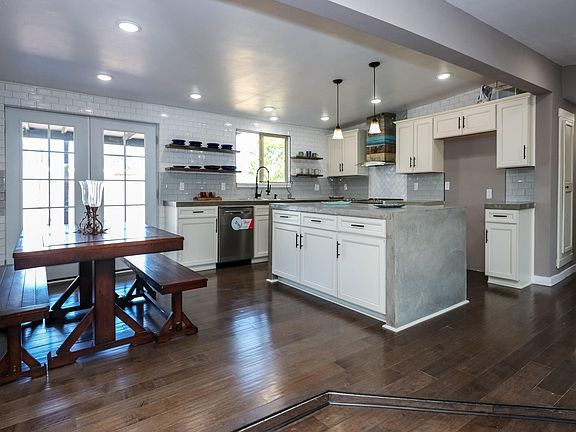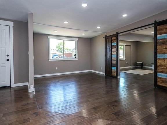 This is a must see!!! This 4 bedroom, 2 bathroom home has an open floor plan with a huge separate family & a modern country decor. It is in a great east side location on a corner lot with good curb appeal. This home has been completely remodeled with to many options to list, Concrete counter tops throughout, concrete waterfall island, beautiful cabinets, stainless steel appliances, hardwood floors, new HVAC, custom bathrooms, massive laundry/storage room, LED lighting throughout, and custom barn doors separating the two living spaces. The french doors open up under the large covered patio where you can enjoy the beautiful back yard perfect for entertaining and fully landscaped including water feature and fire pit. Also full block wall, large alley access & space for RV parking.