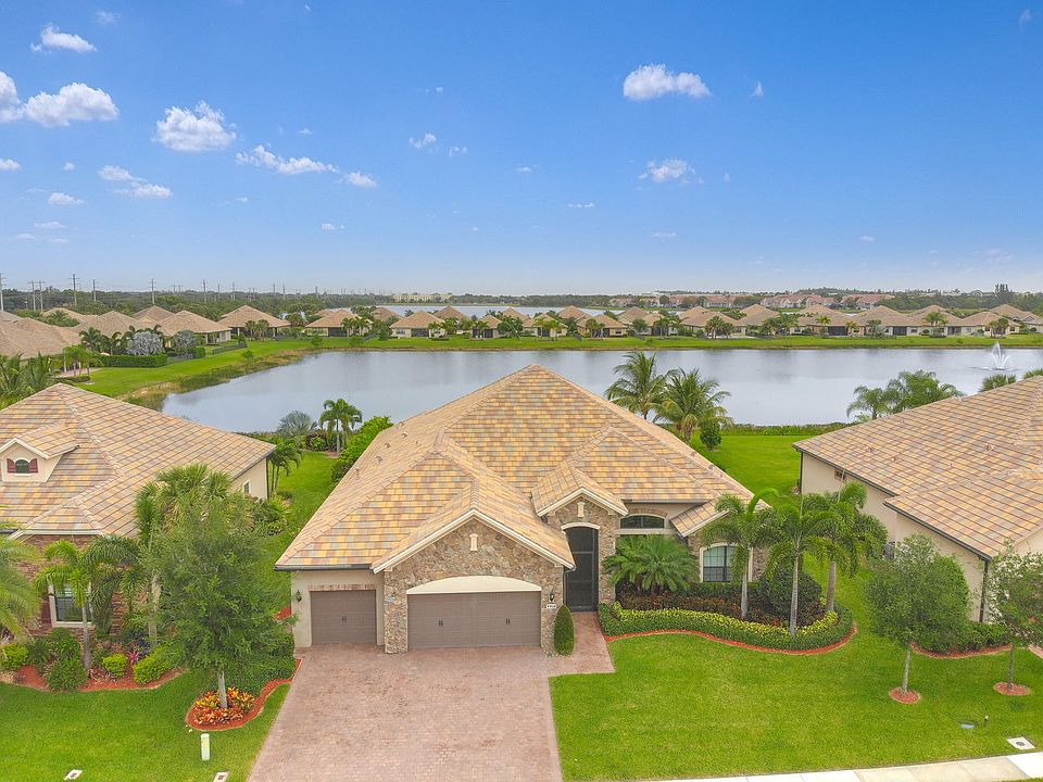 Absolutely beautiful Ritz model in Castellina featuring 4 spacious bedrooms, a large office/den, 3 1/2 bathrooms, 3 car garage and a gorgeous custom pool. This home has it all from incredible lake views to many upgrades thru-out the home. The amazing kitchen is a chef's dream featuring a large center island perfect for the entertaining, upgraded gas appliances, wood cabinetry, pendant lighting, and granite countertops. The outdoor living space is breathtaking with a custom salt water pool features LED lights, extended sundeck, waterfall, decorative fire bowls, & large spa. Coffered ceiling with custom wall design in family room area. Large formal dining area. Plantation shutters for all the windows and all are hurricane impact windows. Prime location in Wellington highly desired community