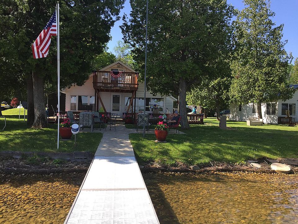 This lovely home on Mullet Lake in Indian River, has glorious views of both sunrises and sunsets. It features a new roof in 2012. Then in 2015 improvements included a handicap accessible mud room, a reconfigured laundry room, a new well, remodeled 3/4 bath near rear entrance, remodeled space above the garage and the installation of a Generac generator. New Alliance windows were installed in 2018 and new tongue and groove wood installed in the dining room. 2020 included a kitchen remodel, including luxury plank flooring. The main bath was completely remodeled in 2023.