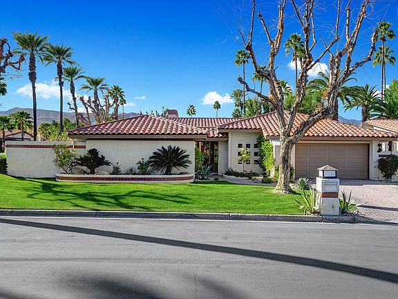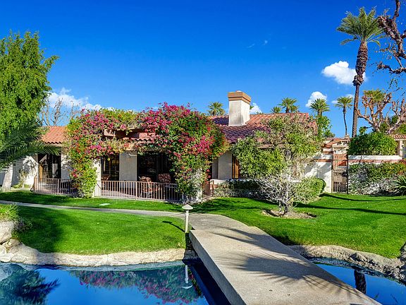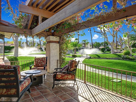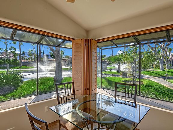 Location, Location, Location. Spectacular opportunity in Indian wells Los Lagos. Prime corner lot interior location with western views of the water fountains and mountains. Updated and move in ready 2 bedroom plus den home. Desert outdoor living with spacious covered side patio as well as back patio with views of the fountains and mountain. Community pool/spa located close by. Enter through the private courtyard into the spacious updated home. Chefs kitchen with bar/pantry opened to dining room area. Bay window from breakfast nook with expansive views to enjoy. Vaulted ceilings in family room with wood beams lead you to the back patio. Great den/office if you are working from home or sofa is a sleeper sofa for more guests. Master suite is expansive with two walk in closets and updated bathroom to include a walk-in shower and dual vanities. Second bedroom is a detached casita great for your guests or family to relax and enjoy. Nice clean 2 car garage. Bunk room great for kids or a hobby/office room. Lots of upgrades throughout. A/c's, furnace, water heater and roof have been replaced in the last 2 years. Interior painted and newer carpet in bedroom. Furnished and move in ready. Gated community close to restaurants, shops, tennis & golf. Los Lagos has community pools/spas, tennis courts and pickleball court. Come enjoy the desert lifestyle!