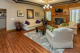 Stunning, Better than New walkout ranch. Architectural detail throughout. Beautiful hardwood floors in great room w/frplc, kitchen, and dining area. Kitchen features granite, tile backsplash, SS appliances, center island. Dining area w/vaulted ceiling leads to covered deck. Large master bedroom suite w/walk-in closet, Master Bath w/jacuzzi, tile shower, dual sinks. Two addtl BRs, full bath, mudroom & convenient laundry room complete the main level. Finished walkout lower level includes 2nd family room, 2nd FP, wet bar, another master suite w/private bath, plus another 2BRs (one w/hidden room behind the bookcase) and another bath. Walkout to patio & backyard. Attention to details...arched doorways, tray ceilings, granite thruout, maple trim, solid doors, security, central vac, irrigation, custom window treatments, Murano Blinds. Great location & Waukee Schools. Contract terms available.
