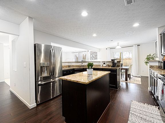 This home boasts generous sized rooms. 3 bedrooms, 2 full bathrooms and a half bath on the main floor. 2 car garage. Surround sound with speakers in living room and primary bedroom. Open kitchen concept with lots of GRANITE counter space and ample cabinets. LVP flooring into rh entry, hallway and kitchen. Patio off the eat in kitchen area. The primary bedroom has a sitting area, and 2 large closets! You have access to a pool, fitness center, and a clubhouse. There is a pond with a trail in the neighborhood. Enjoy the Community Center clubhouse with a game of cards, fitness equipment, and relax by the pool.