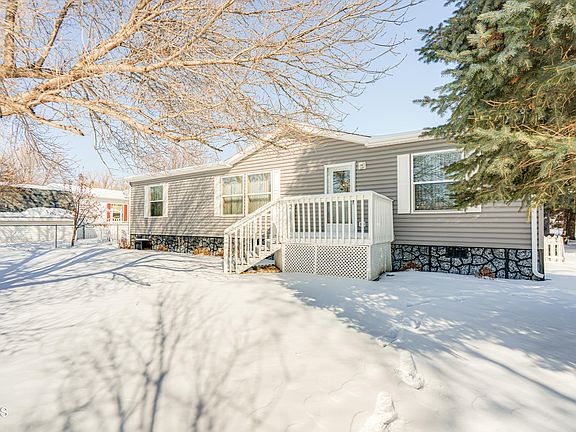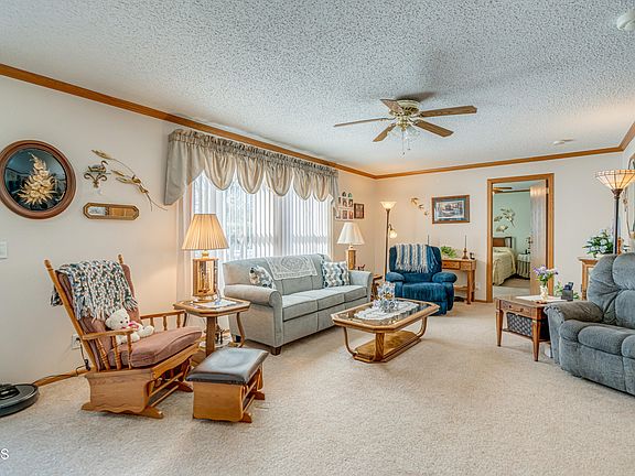 Manufactured home on owned land (no lot rent). This one level home has 3-bedrooms, 2-bathrooms, oversized 2-stall garage, sunroom, & a well-cared for yard with shed. The kitchen has many cabinets, an island, & great counter space with stool seating. The dining room has a built-in hutch & room for a large table. The 3-season sunroom has panoramic windows, providing great natural light & views of the established yard. The spacious living room is great for entertaining & features crown molding & a large window. The primary bedroom has direct access to the ¾ bathroom & laundry space. Completing the interior are 2 additional bedrooms & a full bathroom. The oversized garage & shed gives ample space for a workbench, tools, & storage options. The home has a newer furnace, water heater, & shingles. Schedule you showing today.