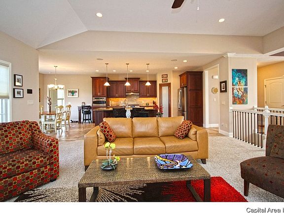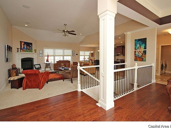 Super desirable open concept living areas on main level & in finished basement! Bright expansive main floor is warm & inviting w/large foyer, vaulted ceilings, gorgeous hardwood in formal dining room & tiled kitchen w/large eat in space. Enjoy stainless appliances accompanied by gorgeous counter tops & back splash. You'll love entertaining inside & out; this home offers an incredible wet bar downstairs & huge lot provides tons of yard space w/deck. Enjoy geothermal HVAC, tiled master shower & an abundance of intricate details in true Savannah Pointe fashion!