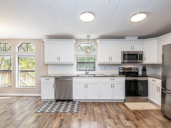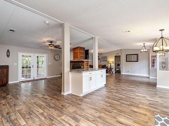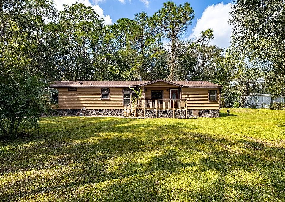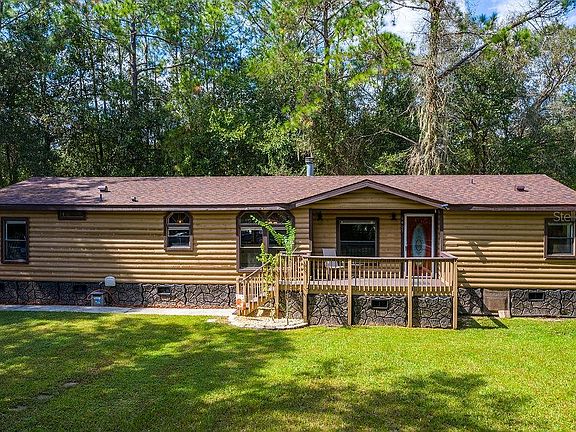 Turn-Key move-in ready 2005 double wide on an incredibly private country (171x306) 1.20-acre lot. NEW 30 year Dimensional Shingle Roof offering wind mitigation credits for lower Buyer homeowners insurance (2020). NEW Energy Efficient 4 Ton 14 SEER AC offering a 10-year warranty(2020). Open floor plan with lots of windows and transom windows which offer great natural light. 3 bedrooms 2 full baths, formal dining room, breakfast island (tons of storage) & family room. Real wood-burning double-sided fireplace. Beautiful Chef's kitchen featuring 42" custom crafted white mahogany cabinetry with crown moldings, soft close drawers and doors with extra pantry storage, Cashmere White granite countertops with a polished beveled edge, Stainless Sink with Upgraded Faucet, Samsung Stainless Steel appliance package & highlighted by 4-inch white subway tile backsplash. Honey Oak scratch-resistant vinyl plank and laminate flooring throughout the entire home (no carpet). The spacious sized 2nd and 3rd bedrooms share a bath with a new vanity with Stone Counter Top. Master suite w/HUGE closet, master bath offers a dual vanity and spacious garden tub with separate shower. Double French doors through the master lead outdoors to the covered screened porch(9'10"x30). Brand New Culligan Water Softener (2020). Septic system just serviced. Spacious interior Laundry Room.1 Car Canvas Garage. NO HOA or CDD. Excellent North Lakeland location with easy access to I-4.