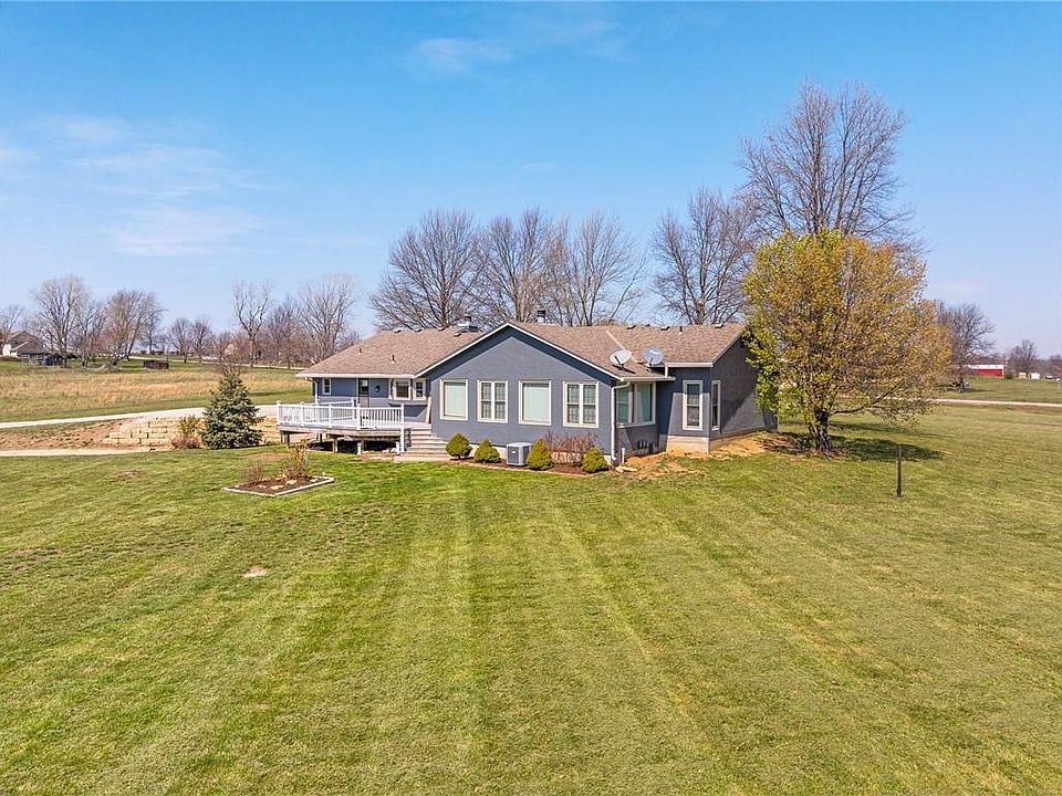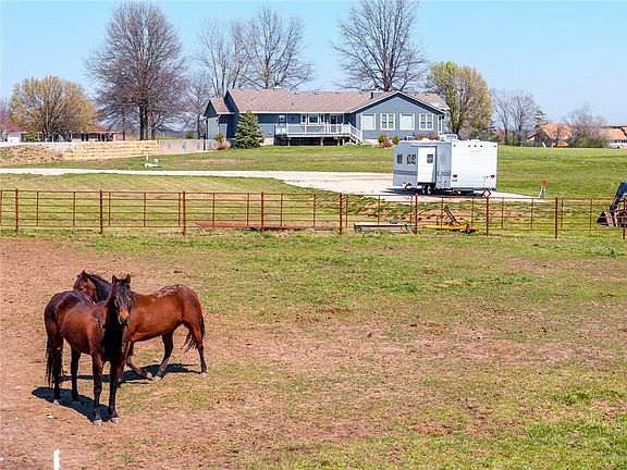 Price reduced $25,000 on this ADORABLE, updated three bedroom, 2.5 bath ranch home with three car garage and  perfect set-up for horses.   Move in ready!! Enjoy cooking in the spacious, new, eat-in  kitchen with custom, white cabinets, granite tops, brick backsplash, new appliances and fixtures.  Cozy living room features a wood-burning fireplace, wet bar, and slider to the sunroom.   Relax in the sunroom with vaulted ceiling and views of the rolling pasture.  The primary suite is roomy and boasts hard wood floors and sliding barn doors that lead to a spa-like primary bath, featuring and over-sized tiled shower, granite counters, with tasteful details.  The cozy, second bedroom has a wood-burning fireplace, built-in shelves, and sliding barn doors.  The unfinished basement would be ideal for a recreation room, media room, office or workshop.  Horse facilities include four pens with pipe fencing and shelters, large, fenced pasture, trailer parking/hook-up, and perfect spot for round pen and outdoor arena.  Beautiful trees and landscaping!   Large deck overlooks the horse pasture and gorgeous sunset views.   Live in the country but minutes from shopping, restaurants, and schools!