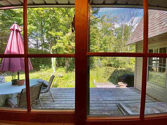 Secluded & Cozy with that UP NORTH feel. This lovely home is located on a paved road just minutes from town. Over 1600sq. ft. with all the essentials on the main floor. The living area with it's soaring ceilings and abundance of windows give you so much warm natural light and a gorgeous view of the surroundings. French doors to the backyard deck for entertaining or just kicking back connects to the Fla./Sun Room. 2nd level has 1 possible 2 bdr. and full bath. The loft overlooks the living area and the sewing/bdr. has a balcony. Property is wooded with a circle drive, front & rear decks, AC, Back up generator, Security System, 24X24 Pole Barn, large shed, natural Gardens and we're just in time for Grape picking.