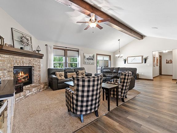 Looking for a ranch on a full finished basement? Look no further, this home offers fabulous curb appeal the minute you drive up in the street. Over 4000 sqft of finished living space, 5 bedrooms, and 3 1/2 baths. Super open floor plan, vaulted living room ceiling with a rustic beam that spans the entire room, the kitchen is a dream of storage with bright white cabinetry, a breakfast bar and dining area. Split bedroom floor plan, the master has a spacious bathroom, large tub, separate shower and walk in master closet, the split offers 2 bedrooms on the other half sharing another full bath. Two additional bedrooms featured in the lower level also sharing a full bath. The lower lever is super for entertaining, set up with a bar area complete with cabinetry, large enough for a pool table and set up with a projection screen. Don't be fooled by the garage, it may appear as a two car garage, however this garage is 30X26, much, much larger than your average garage with a gas heater for your cold weather garage projects. The backyard is just as appealing as the front, beautifully landscaped, a flagstone patio and backs up to an open area. The home is close to everything, schools, shopping, the YMCA and hospitals. Call for a tour, this one won't last long!