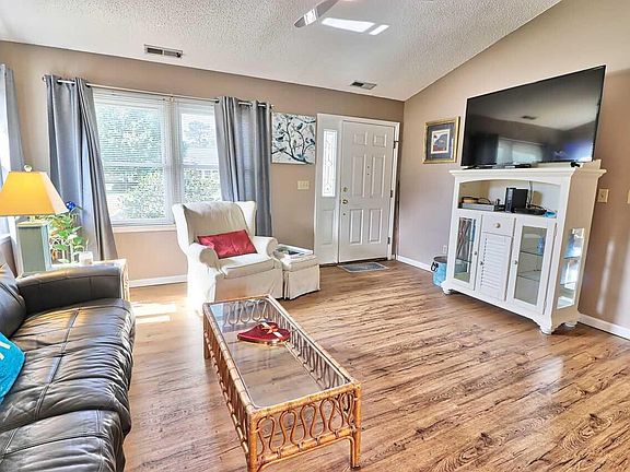 All brick two bedroom, two bath home has been well maintained and it shows! New flooring in most rooms, new windows, and freshly painted. There is a large 14 by 13 Carolina Room that can be used for an office, craft room, or third bedroom. There is a 16 by 12 detached storage building with an additional 6 by 8 room attached. Irrigation system front and back with a lawn well with new motor. This home would make a great second home or permanent residence in a wonderful community with low association fees. It is located only minutes to the beach, shopping, North Myrtle Beach Park and Sports Complex, Route 31, and all that North Myrtle Beach has to offer. Furniture is negotiable.