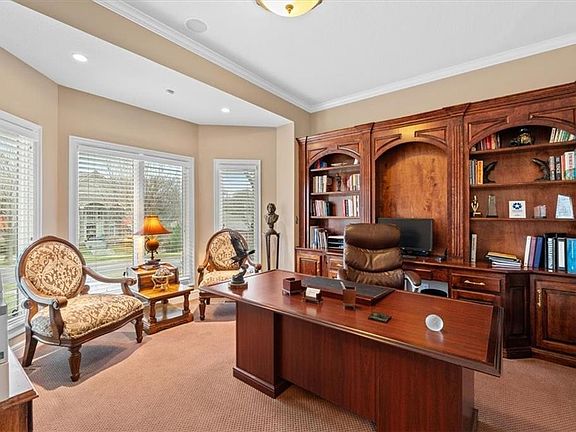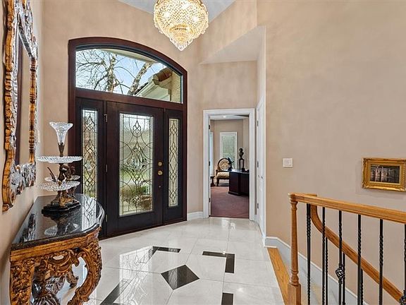 Welcome to this refined retreat on picturesque North Hickory Lane, nestled in the prestigious and final phase of Briarcliff West. This 4-bedroom, 3.5-bath residence offers over 4,500 square feet of thoughtfully designed living space, blending privacy, sophistication, and convenience with easy access to major highways and the airport. Step inside to soaring 12- and 14-foot vaulted ceilings on the main level and 10-foot ceilings throughout the walk-out lower level. Recent upgrades include stunning Taj Mahal Quartzite countertops in the gourmet kitchen, paired with tall birch cabinetry, a walk-in pantry, and a vaulted hexagon-shaped breakfast area. Newer appliances—including refrigerator and dishwasher—make daily living and entertaining a breeze. The luxurious primary suite features floor-to-ceiling windows, plush carpet, and a spa-like bath with tall cabinetry, soaker tub, oversized walk-in shower, and a generous walk-in closet. The expansive lower level is an entertainer’s dream with a two-sided gas fireplace, full wet bar with sink and fridge, wine storage, cedar closet, workshop, and ample storage. Three secondary bedrooms—each with walk-in closets, including one with an en suite—offer flexibility and comfort. Throughout the home, you’ll find custom marble floors, Anderson 400 series casement windows, crystal chandeliers, detailed millwork, wide trim, and vaulted ceilings with modern lighting. Additional highlights include a main-floor office/library with built-ins, a custom imported vanity in the powder room, main floor laundry, and newer HVAC, humidifier, and water heater. A top-tier security system includes three cameras and a Ring doorbell. Outside, enjoy the tiered backyard that backs to mature trees and scenic nature trails. Car enthusiasts will appreciate the oversized 3-car garage with 11-foot ceilings. Just minutes from the charm and amenities of Briarcliff Village—this exceptional home is not to be missed.