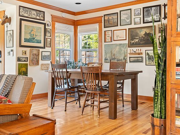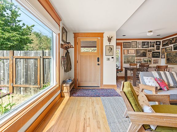 Let your imagination run wild with this coveted city oasis, located on almost 1/3 of an acre in the Cully Neighborhood. Inside, you'll find Craftsman + Prairie style influences w/ reclaimed hardwood floors, wood trim + custom wood cabinetry, period fixtures, rejuvenation lights, brass switch plate covers + red brick fireplace. Meanwhile, more modern sensibilities will appreciate the open concept living/dining/kitchen, 4 spacious bedrooms + 2 bathrooms, including the primary bedroom w/ walk-in closet + cozy gas stove. Kitchen features high-end appliances, raised concrete countertops, as well as ample storage + surfaces for your garden windfall. Abundant windows throughout the home provide natural light + views of the garden from every room. Major system updates include new/newer water heater, furnace, AC, updated electrical panel, radon system + more. Backyard is an urban farmer's dream, with a covered rear patio, greenhouse, shed/tool storage, woodshed, rainwater cisterns, raised beds, chicken coop, wild bunnies, espalier fruit trees + a myriad of other flora.  Listen to the birds chirp as you gather berries from your patch, or harvest from established garden beds. Escape the sunny plots and relax under the gorgeous old walnut, fir + hawthorn trees. Plenty of room for your two and four legged friends here in this lush, peaceful paradise! Detached, oversized garage with 120V power perfect for the hobbyist. Nearby restaurants, cafes, bars + retail on 42ND AVE. [Home Energy Score = 4. HES Report at https://rpt.greenbuildingregistry.com/hes/OR10219334]