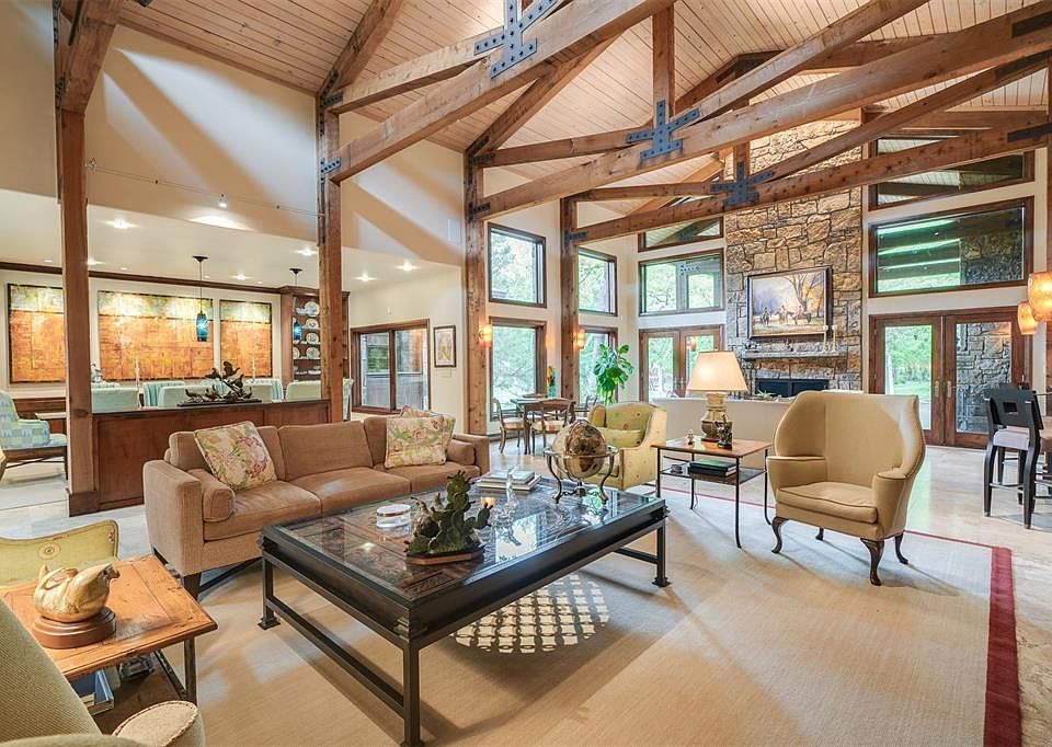 This custom LUXE RESORT style home sits on almost 3 acres and is AN IMMERSIVE NATURE EXPERIENCE. The 7500+ square foot split plan is timeless, elegant with MID-MOD touches. Approx 3500 sq ft renovation/Add-On completed in 2011. The perfect home for large gatherings or quiet nights at home. 5 bedrooms (2 Master Bedrooms), 4 full baths, 2 half baths, 4 outdoor living spaces, 5 wonderful fireplaces, 2 laundry rooms, a spacious shop heated and cooled, generator, custom lighting++. The GREAT ROOM takes my breath away with soaring ceilings, grand exposed wooden trusses, a magnificent fireplace, bookcases, elegant wet bar w ice maker and seating plus a fantastic formal dining space. Master Bedroom has sitting area, fireplace, office area, STEAM SHOWER+walk-in shower+jetted tub+dreamy big closet+private patio with water feature. The floor plan is a dream. Nestled in SE Edmond's gated Oakdale Farm I community, an approx 80 acre neighborhood that is fenced and gated with pastoral green spaces, tennis courts and a fishing pond.