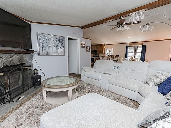 This charming, well maintained updated 3 bedrooms, 2 full bath, 1500+ sq. ft. manufactured home is a must see and move in ready. Home was built on a poured 8' foundation walls for a future basement and sits on 0.78 of an acre. Welcoming open floor plan, vaulted ceilings, Large family room w/wood burning stone fireplace perfect for those cold winter nights, sliding patio door leads out to a 12x24 deck that overlooks the pool, great for entertaining. Spacious kitchen with an abundance of cabinetry & counter space, breakfast bar, center island, stainless steel appliances with adjacent breakfast room, main floor laundry. En-Suite Master with walk-in closet, his & her sinks, tub & separate shower. two generous sized add'l bedrooms w/walk-in closets, updated hall bath. 8x12 insulated pool house w/12x12 deck to the 24' above ground pool. Detached foundation & floor poured for a 2 car garage currently has aluminum 20x12 carport. Large lot across the road is part of the 0.78 acres.