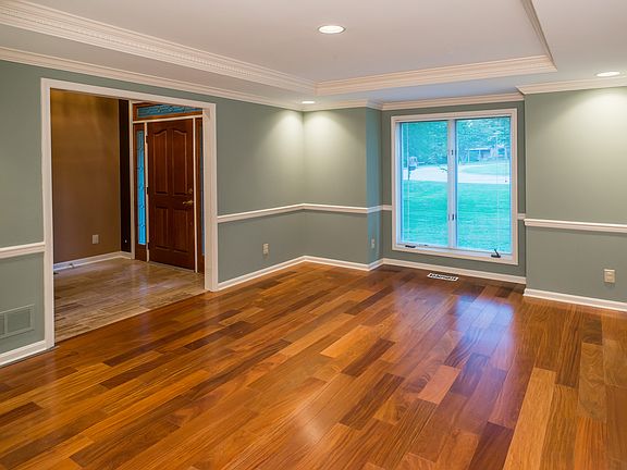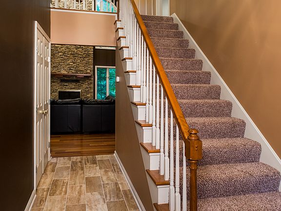 Welcome to this gorgeous home nestled in the woods on a quiet cul-de-sac. Large open kitchen with granite countertops. Nice sized pantry with pull out drawers. Breathtaking stone fireplace goes from floor to cathedral ceiling in living room. Added wet bar in living room with gleaming hardwood floors. First floor master with lg master bath has separate tiled shower and whirlpool tub. Master bath has separate door leading to a private deck. So much space and that's just the first floor! Second floor bedrooms have nice sized closets. Cute window seat and built in bookcases in one bedroom. Full bath on second floor with tiled floor and double vanity. Huge finished walkout basement with brick fireplace is perfect for entertaining. Basement has another full bath and kitchenette.