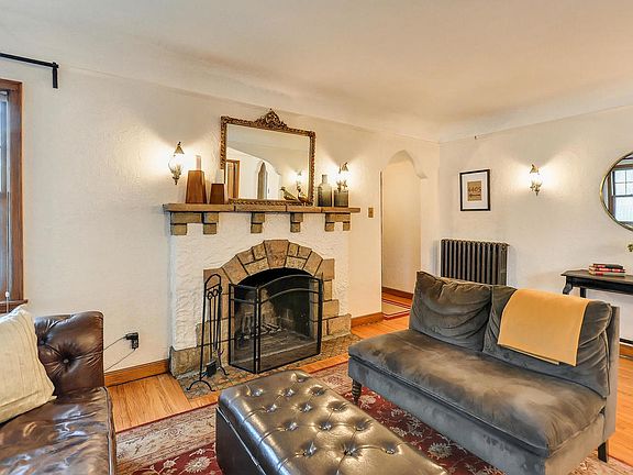 Classic 1933 Tudor with vintage architectural detail both inside and outside of the home. Beautiful art deco wall sconces and chandelier. Oak and Douglas Fir hardwood floors throughout. Heavily textured plaster walls, picture rail, wood burning fireplace with stone surround. Gorgeous vintage bathroom with tasteful subway tile used as a bath/shower surround. Enjoy the cozy 3 season porch overlooking the large fenced yard. Large footprint of the home offers great spaces on all levels.