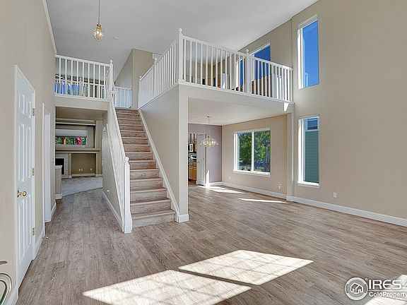 Welcome to this expansive & light-filled home in the heart of Loveland! This stunning two-story residence offers an open floor plan, soaring vaulted ceilings, & grand windows that fill the home w/ abundant natural light. Upon entry, you'll be welcomed by a striking foyer that flows seamlessly into an airy living room, ideal for both entertaining & relaxation. The adjacent dining room leads to a beautifully appointed kitchen featuring sleek granite countertops, stainless steel appliances, & ample cabinetry to meet all your storage needs. A charming breakfast nook offers serene views of the backyard, while the cozy family room-complete w/ a gas fireplace-provides the perfect space for gatherings or quiet evenings in. The main floor primary suite is a tranquil retreat, featuring a luxurious 5-piece en-suite bath & dual walk-in closets. The spa-like bathroom includes an expansive double vanity, a soaking tub for ultimate relaxation, & a separate walk-in shower. Completing the main level is a mudroom w/ washer/dryer hookups & a convenient powder bath. Upstairs, a bright & open loft overlooks the main living area, providing a versatile space for a home office or lounge. Down the hall, you'll find two generously sized bedrooms & a full bath w/ double vanities nestled between them. The spacious basement expands the living area further, offering a large family room, an additional bedroom, a bonus room, a 3/4 bath/laundry room, & two storage rooms. Outside, enjoy your own private oasis w/ a spacious deck, a fully fenced lawn, & a beautifully maintained garden-perfect for outdoor living. The attached oversized garage is an added bonus! Located near scenic trails, lakes, parks, & just a short drive from stores, restaurants, & more, this Loveland gem offers the perfect blend of tranquility & convenience.