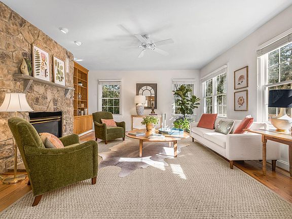 Private sitting roomStunning stone fireplaceRec areaBonus roomTree-lined enclavePaved trailsWooded views