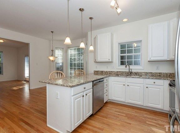 As soon as you enter this home you are greeted by tons of upgraded features including hardwood floor entry, rounded staircase, Entertain in the spacious kitchen with sunny breakfast nook with bay window. Open plan includes family room with marble surround gas log fireplace, tons of windows and double glass doors leading to sunroom and oversized deck. Additional room to spread out in the step down bonus room. All additional bedrooms have walk-in closets. Hard to find Cary address in a cul-de-sac.