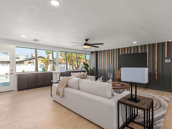 Fall in love with this gorgeous 6-bedroom, 4-bath property in the corner lot in a cul-de-sac! This beauty flaunts a desert front yard w/turf, 2-car garage &private courtyard. Modern tastefully designed interior highlights an open floor plan enhanced with custom wall, recessed lighting and abundant natural light. Stunning gourmet kitchen is a culinary delight, fully equipped with gleaming quartz counters, elegant smoke cabinetry, tile backsplash, and an island w/breakfast bar. Plenty of storage cabinets. Retreat to the spacious main suite, offering a walk-in closet, a sophisticated bathroom with dual sinks, and a walk-in shower. Secondary bedroom w/ensuite bath. Split floorpan. Custom tile work in all bathrooms. Dream oasis backyard.This beauty is ready to be yours! AVAILBLE 8/1