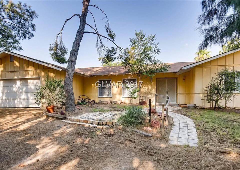 Historic Clark County property! Home is sold with the southern adjacent parcel, separate address. Opportunity to own 2 acres +/- of VINTAGE VEGAS. Property has opportunity for various future uses. SFR home w/ over 2,900 SqFt, 5 Generous Beds, 3 Full Baths, Warm inviting family room w/ beautiful wood burning fireplace, sunken living room, separate dining room. Custom features throughout. Private inground pool. Nothing like this on the market!