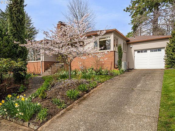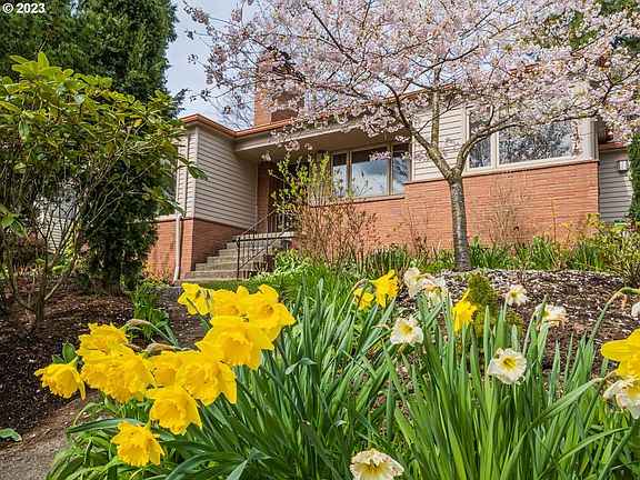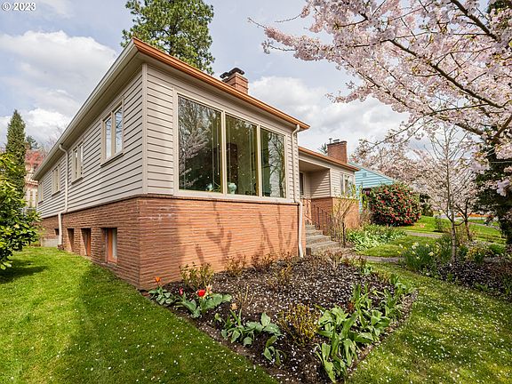 Welcome to this Eastmoreland Heights classic mid-century that truly sparkles. Sitting slightly elevated above the street with a gorgeous front yard garden, the home is a showpiece for what makes these 1950's homes so special with its spacious and airy rooms full of light. The longtime owners have lovingly and meticulously maintained, restored and updated the home's original features including replacing all the main floor windows with Marvin wood framed windows, updated hardware and vintage period lighting. A formal entry way is flanked by a large living room with gigantic south facing windows and a floor to ceiling roman brick fireplace, and a formal dining room with more south facing windows. A half-wall was taken out between the kitchen and dining room and was replaced with a stained glass masterpiece crafted by a local artisan tasked with evoking 1950's design elements. The kitchen has been restored to its mid-century prime with newer countertops and tile backsplash, and includes a large eat-in area surrounded by windows. A long hallway accessed from both the formal entryway and kitchen forms a circular floorplan and connects the 3 bedrooms and upstairs bathroom. Two of the bedrooms have exterior access in addition to access through a door in the attached garage, creating a backyard courtyard with a Palm Springs vibe. The nearly full basement has good ceiling height and a large family room with fireplace and windows that bring in lots of light. A custom built-in bookcase was added to separate the family room from an area for guests, and it would be easy enough to add an egress windows and a door to this space to create a large 4th bedroom. The full downstairs bathroom has a spa like bathtub and bathroom cabinets built to replicate the kitchen?s cabinets. The front and back yards on this oversized lot are a gardeners dream. Add in a good sized attached garage and this house is the whole package plus! [Home Energy Score = 3. HES Report at https://rpt.greenbuildingregistry.com/hes/OR10213768]