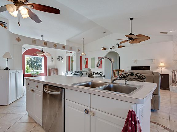 Located on a quiet 1 acre lot in desirable Canaveral Groves. Open floor plan with lots of natural light. Vaulted ceiling in the family room with Coral fireplace for cozy Florida nights. Kitchen is spacious with crisp white cabinets, expansive counter space, aluminum backsplash, island and eat in area. Formal dining room for family dinners and entertaining! Storage is no issue in the Master bedroom with TWO spacious walk in closets. Master bath is roomy with double sinks, walk in shower andJacuzzi tub. Four season Lanai is an expansive 10x26 (260 sf added to the heated/AC living space!) Upgrades include New AC and Heat Exchanger, Roof only 3 years young, partial house generator, hurricane shutters & hurricane rated garage door, new tile and MUCH more!! Outbuildings include a 16x10 shed with an attached 8x16 greenhouse. There is an additional 8x10 shed and carport. Fenced backyard