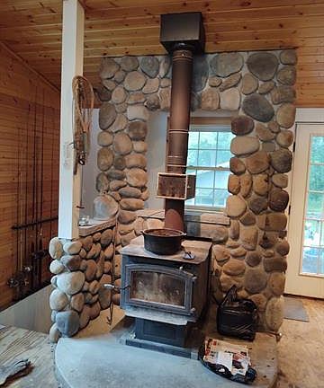 Waterfront property on Skinner Lake. Great views. No wake Lake. Dock. Electric motors only. Year round or vacation home in the making. Needs your final touches. New kitchen counters and cabinets. Cedar wood ceiling. Stone fireplace setting with woodstove. Gas furnace also. Newer windows. Newer 300' well. 2x6 walls. Walkout basement. Currently 1 bedroom, but can be 2. Front deck and balcony. Back deck. Newer roof.