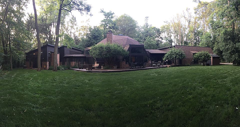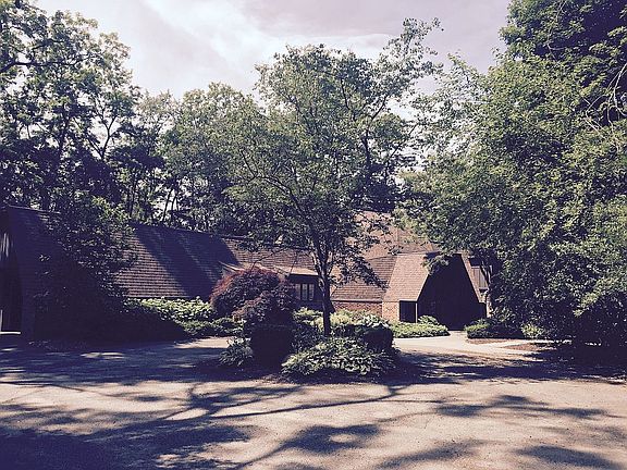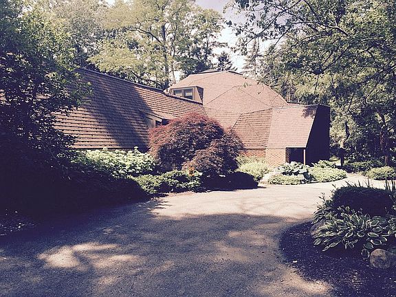 We are living in a work of art! Geodesic design, unique, one of a kind home with 2 first floor master bedroom suites and over 4600 square feet of living space. House renovated in 2015, with the inclusion of brand new 1000 square foot addition encompassing master bedroom/bath, WIC, and library/study with gas fireplace , skylights, and French doors opening to backyard (true adult wing!), master bath has heated floors, granite countertop, and separate toilet room Existing house was renovated in 2015 to include 2200 square feet of hardwood floor; new custom stair case, new brick exterior; closed foam insulation; new windows, door walls, skylights; new roofing; copper flashing, 4 HVAC zones for maximum comfort and efficiency including 2 new air conditioners and 3 new furnaces; 3 new water heaters including 1 tankless in addition; 4 new toilets, new oven range. House has 3-car garage with 2 attics for storage. Situated on one acre, 250 feet off Maple in the woods. Beauty and privacy. Great location, walking distance to restaurants and shops.