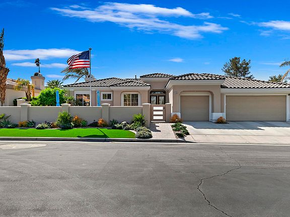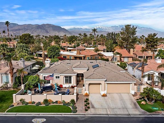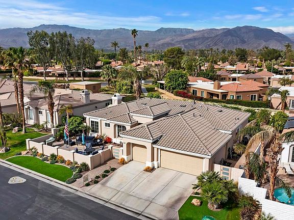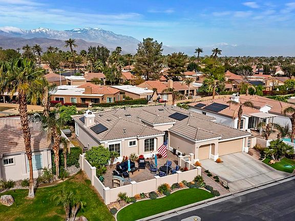 Nestled in the Heart of Indian Wells in the sought after gated community of Colony Cove. Move In Ready with over 2,600 Sq Ft with 4 Bedrooms. Completely remodeled Kitchen with Custom Cabinets, slab granite, stainless appliances and Island Prep with Bar Seating. Pool and Spa. Split floor plan with Master separate from Guest Bedrooms. Current owner added huge , private walled front patio with south facing views of mountains. Great entertainment space - Solar lease with Renova of $350 month - Furnishings negotiable outside of escrow -
