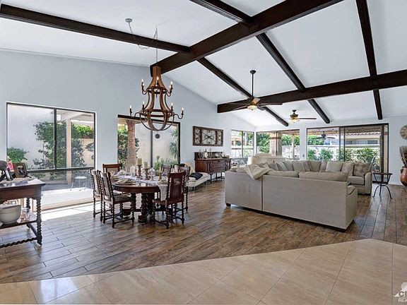 Dramatically detailed & uniquely upgraded home located right in the hart of Indian Wells! Sophisticated style throughout this charming home with numerous custom-quality touches, warm tones and creative uses of tile, granite and stone. Highlights of this immaculate entertaining home include soaring ceilings, gleaming tile floors. Bring the outside in through expansive picture windows. Open family room with stately fireplace & gourmet kitchen to please the most discerning chef with stainless steel appliances and rich wood cabinetry. Master Suite is a private retreat with walk-in closet, luxurious spa-style bath and views revealed through the sliders and windows. Enjoy the Entertainer's dream patio with Views, a custom spa. Dramatic landscape lighting sets the tone for the cool and romantic Desert nights to come.? This is desert living!