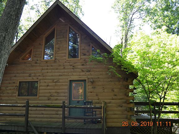 Lakefront Log Cabin, a true Pocono gem! This quaint authentic log cabin is just adorable! sits on over a half acre, corner lot. 2 Bedrooms plus spacious loft, open kitchen/living area with wood floors and wood stove. Needs some TLC, well worth the effort!