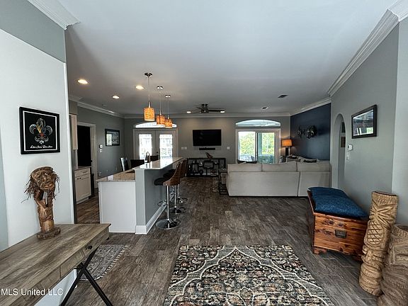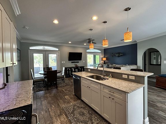 Rent the River and experience just what river life has to offer. Bright, airy, 3bed/2.1 bath river home featuring panoramic views from the office/sunroom. Open floor plan with water views from almost every room. Fully equipped kitchen. Have your coffee on the porch overlooking the water. Watch your favorite sports at the downstairs bar and fish from the private dock! Home is located on Doctors Lake with deep water access to the Tchoutacabouffa River and to the Gulf so bring your boat and fishing poles. Bulkhead, fenced yard and covered parking for four vehicles and easy access keybox entry. 10 minute drive to Keesler Air Force Base, Merit Health, casinos and shopping. Email today for more information on leasing. Year Lease Required. Rent includes lawncare. No Smoking inside, Pets on approval and would require additional deposit. Application, credit and background check required.