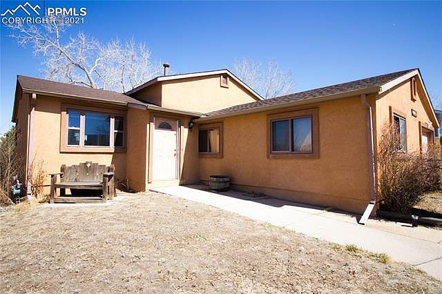 Beautiful stucco home located on a corner lot with views of Pikes Peak! Master suite has a walk-in closet with attached full bathroom! Large spare bedroom upstairs has plenty of room for a traditional bedroom or a room for hobbies! Main level has the dining room and kitchen with a walk-out to the backyard! Large main level has a wood fireplace, 3/4 bath and spare bedroom! Basement has another spare bedroom with a large closet and the laundry room with washer and dryer included! Large garage has plenty of storage with another room built into it!