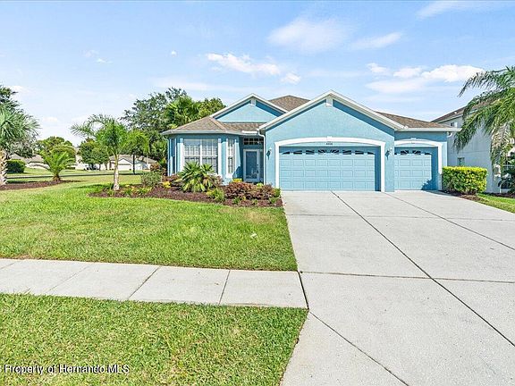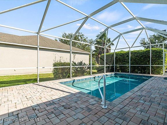 2006 Lennar built Pool Home with 4 bedrooms, 3 full bathrooms and a 3 car garage. This open floor plan features ceramic tile in all common areas, a spacious eat in kitchen with 42in maple cabinets, Corian counters, Island and breakfast bar overlooking family room and separate dining/flex room, 96in triple sliding glass doors. Master suite with his/hers closets, dual vanities including separate garden tub & shower also has access to covered lanai with paver decking surrounding screened in pool area on a landscaped corner lot. 2,171 Living sqft, 2,962 Total sqft. Centrally located in gated Sterling Hill with upscale amenities including two club houses, 2 pools, exercise facility, tennis and more.