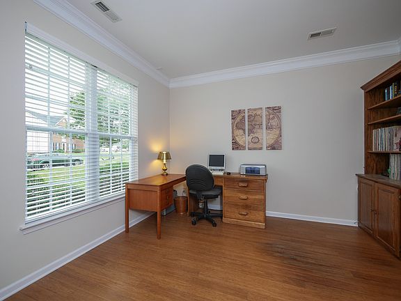 Just bring your suitcase & move right in. Fresh neutral paint thu-out interior. Beautiful bamboo wood floors on main level & brand new carpeting upstairs. Dramatic two story foyer full of natural light. Private study with french doors. Formal dining room has bay window & trey ceiling. Open great room/kitchen layout with gas fireplace. Big eat-in kitchen with upgraded 42” cabinets, new SS microwave, & tons of counterspace. Master suite features high, vaulted ceilings, dual vanity sinks, garden tub, & walk-in closet. Unbelievable media room with black-out shade, full surround wiring, projector ready, & custom movie theater style seating. Almost entire house is wired for surround sound & has included in-ceiling speakers in several rooms. Rear sunroom looks out to private backyard surrounded by mature trees. Sought after community with awesome amenities including pool, tennis, playground, & more. Just minutes to now complete I-485.