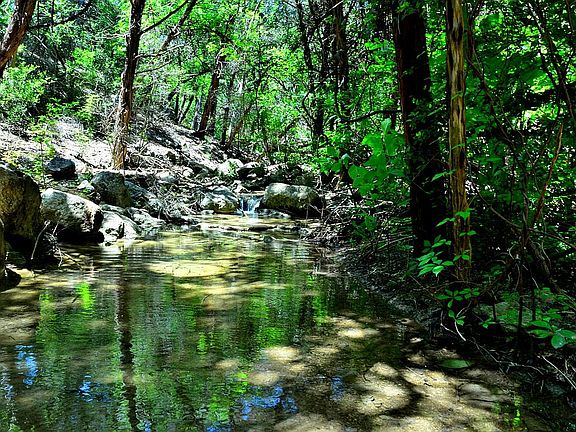 Amazing...in and out. Prime cul-de-sac lot backs to creek w/ distant Hill Country views. Manicured grounds w/ multiple beds, palm trees, massive front oak tree, covered outdoor living w/sound, Pebble Tec lap pool, iron fenced. Wood beam vaulted family room w/ views. Open island kitchen...Carrera marble, Bosch appliances,massive pantry, bar area. Billiard/media room up with built-ins, granite bar, ice, fridge. Tastefully updated baths. Wood & stone flooring. Exceptional home and setting. Just see pics!!