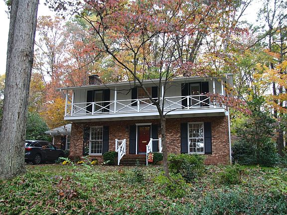 HAMILTON LAKES just a half block from AMAZING NATURE TRAILS AND LAKE! Open floor plan with huge kitchen with LARGE ISLAND with overhang for 6 BARSTOOLS, MARBLE countertops, 6 burner gas oven/range, pull out shelves, FARM SINK with window and door overlooking HUGE YARD with large patio, STONE walls, playhouse, wired storage building. HARDWOOD FLOORS on both floors. Primary bath recently RENOVATED with new tile floor and tile tub surround and vanity. Two bedrooms have doors to UPSTAIRS PORCH! Double parking pad, unique swing great for kids. Large laundry room and adjacent living room on first floor could be converted to a first floor additional Primary bedroom. Lots of possibilities. Great schools, close to shopping, and recreation.