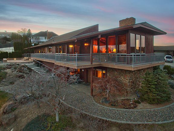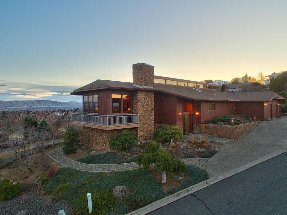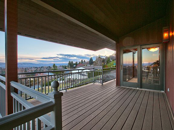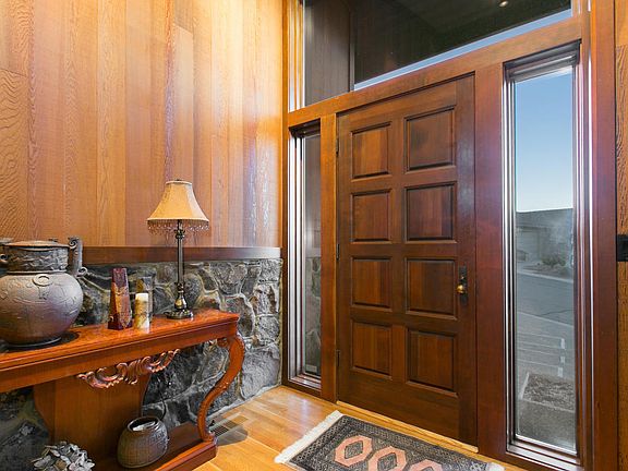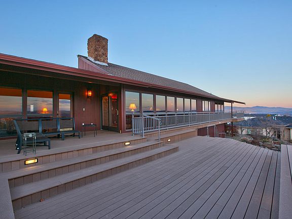 Polished and Perfect with Panoramic Views! Custom Built with 2 Lots - Clean lines with attention to detail, high-end finishes, outstanding design and superb execution. Open concept kitchen/family room, Tiffany style lighting and built-in desk. Formal dining has built-ins and backlit stain glass. Master suite with view and deck access. One of 3 fireplaces wrapped in copper, wet bar, wine cellar, outdoor water feature and more.